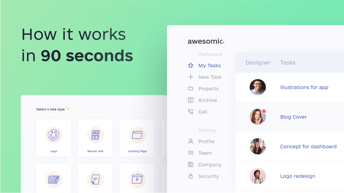 At Awesomic, you get a dedicated graphic and/or UI designer who studies your business needs and works as a part of your team.